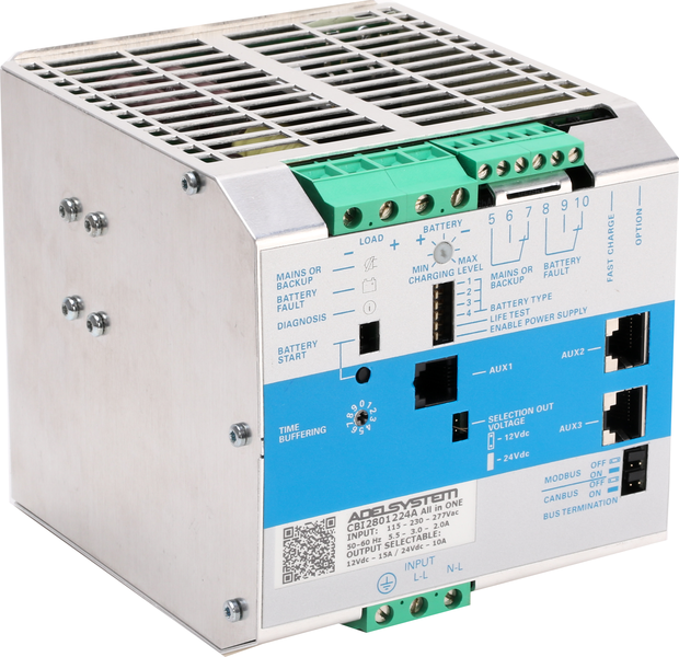 A number of industrial power supply backup sources (sometimes also known as DC-UPS) from traditional Italian manufacturer Adel System brings the best technologies to the category of affordable sources. The CBI2801224A is an AC/DC source with an input voltage of 115-230V and a direct user option 12 or 24V . In addition, the batteries can be connected to the power supply, and the powered device will remain in operation even in the event of a power failure.