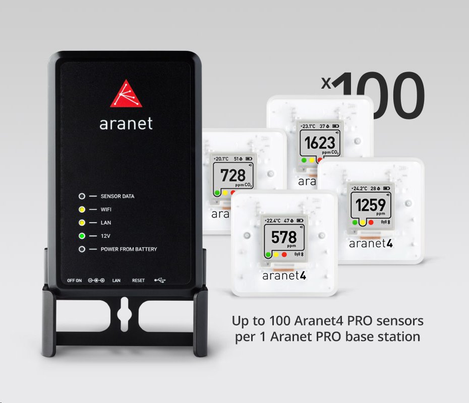 V závislosti na tom, kolik senzorů je potřeba propojit, je možné přikoupit licence na 50 a 100 senzorů - v základní konfiguraci umožňuje jednotka obsloužit 12 senzorů. Bezdrátové senzory lze nasadit v dosahu přímé viditelnosti až 3 km. Aranet PRO je dodáván s bezplatným softwarem či je ho možné zapojit do Aranet Cloud pro centrální správu. Snadno použitelné rozhraní umožňuje prohlížení, analýzu a porovnávání dat v reálném čase, nastavení prahových hodnot pro alarmy i export zpráv. Responzivní design rozhraní se přizpůsobí smartphonu, tabletu nebo notebooku.