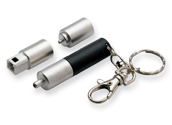 Very small dimensions 64x12mm, suitable as key ring , 5km, battery 3xLR41/AG3