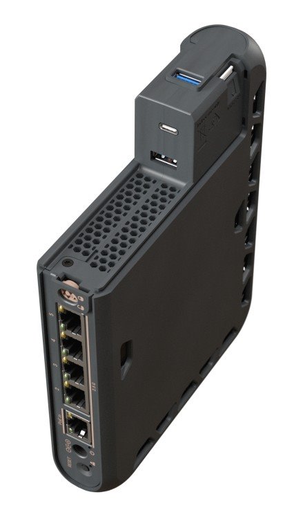 Router běží na RouterOS v7 s licencí Level 6 a hardwarově nabízí 2 GB RAM a 512 MB NAND, takže je vhodný nejen jako WiFi router, ale i pro pokročilejší síťové scénáře (firewall, routing, VPN a další RouterOS funkce). Zároveň jde o „media hub“: má 1× USB-C, 2× USB 3.0 Type-A a microSD slot pro rozšíření úložiště a doplňkové použití. Pro chytrou domácnost a moderní ekosystémy přidává Bluetooth 5.4 a vestavěné Thread rádio (pro připojení zařízení pomocí Matter/Thread).
