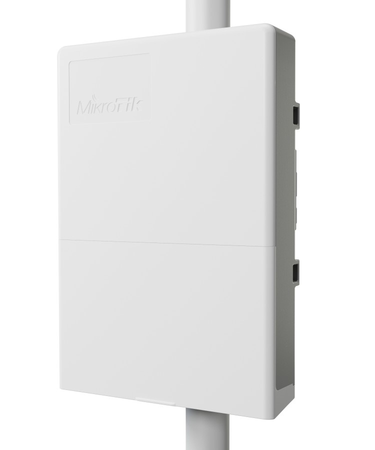 The switch can be powered by a standard DC power supply via DC jack 18-57 VDC or by PoE (active and passive 18-57 V). Protection against external conditions is ensured by IP54 protection, mounting is possible both on the pole using the supplied tapes or on the wall.