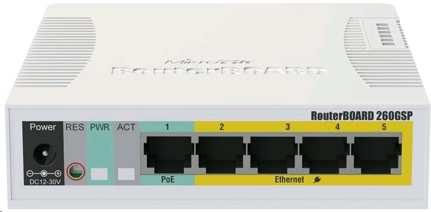 This model differs from the previous RB260GS options to power additional devices on the 2-5 passive PoE with a maximum current of 500 mA/port.