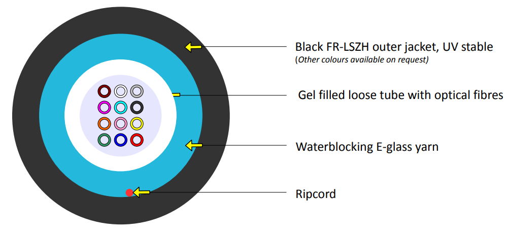 This universal optical cable can be used in both indoor and outdoor environments. It is designed primarily for storing in cable troughs or pulling into installation pipes. Cable diameter 5.4mm. It has standard rodent protection. The optical fiber is guided in a gel filled with a tube. The operating temperature of-30 ° C to +70 ° C. The life of the cable is at least 30 years old.