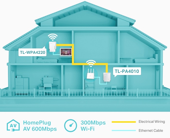 Pro všechny přístroje v místnosti existují dvě možnosti připojení k zařízení TL-WPA4220, a to bezdrátově nebo pomocí ethernetového kabelu.