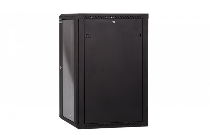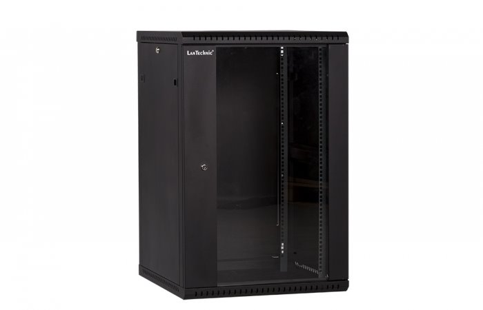 RACK LanTechnic, 19", 18U, 600x600mm, glass door, wall-mounted, one-piece, black