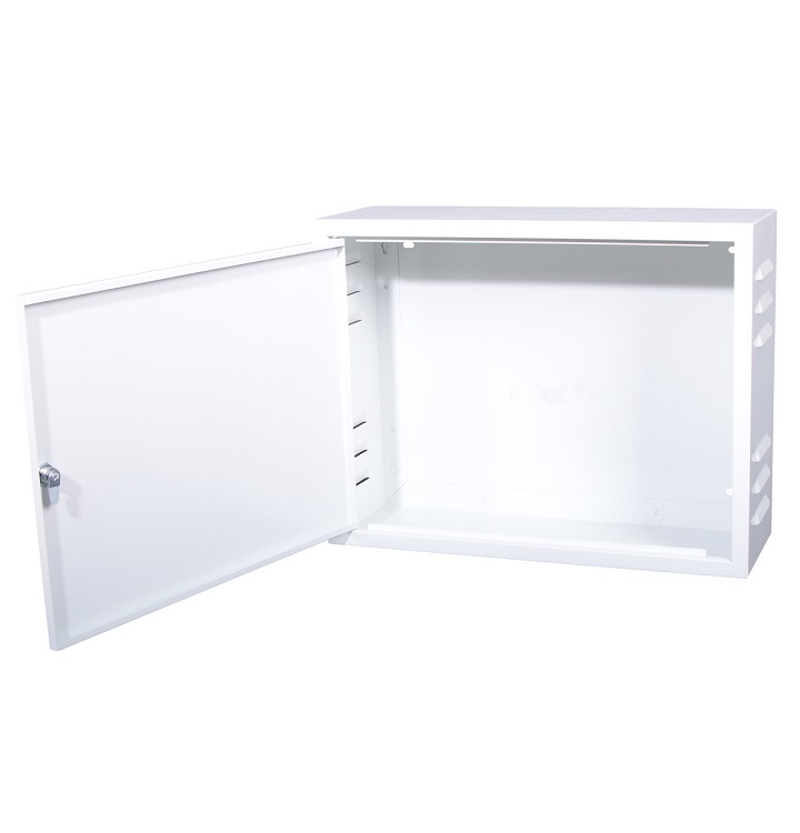 Celokovová uzamykatelná rozvodná skříň s plným zadním čelem pro instalace prvků CCTV, TV, SAT nebo WiFi pro vnitřní použití s rozměry 520x400x140mm disponuje několika vylamovacími otvory na horní a spodní straně. Uchycení na zeď 4 montážními otvory na ...Další informace