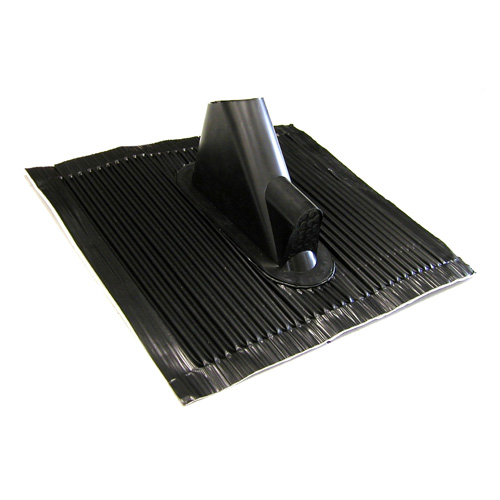 Hliníková černá střešní taška umožňující prostup stožáru i kabelů přes střechu.Další informace
