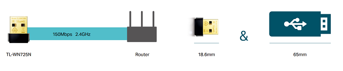 TP-Link TL-WN725N je miniaturní klientský adaptér určený pro zapojení prostřednictvím USB rozhraní, tedy především pro použití v noteboocích a jiných kompaktních počítačích. Pracuje s pásmem 2.4 GHz , konkrétně dle novějších standardů IEEE 802.11 b/g/nDalší informace
