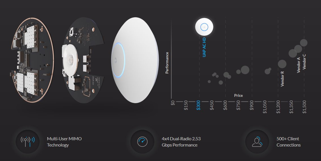 Unifi AC HD is the first uniif unit with 802.11AC Wave2 technology , which offers simultal communication MU-MIMO and revolutionary transfer rate up to 800 Mbps in the 2.4 GHz and 1733 Mbps in 5 GHz!